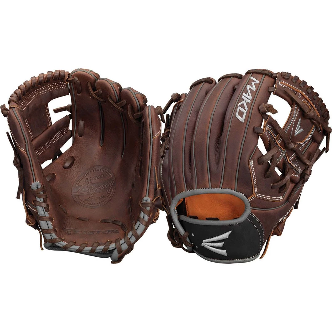 Easton’s MAKO Legacy gloves have been redesigned, re-crafted and re-shaped to become the best glove Easton’s ever made. You’ll notice the difference the first time you feel Easton’s HERO kip leather, which has a rare combination of durability and softness.The result is a glove that feels customized and broken in the first time you put it on, yet is built to last. Easton’s elite craftsmanship is on full display with the MAKO Legacy, including hand-oiled PRIMASOFT sheepskin lining, cushioned pinky and thumb loops, rolled leather welting and USA-tanned professional rawhide lace with a tensile strength of 100 pounds. The 1125DBG model is ideal for middle infielders with its 11.25” sizeand I-Web pattern. Every inch of this glove is individually inspected to ensure premium fit and performance. Easton’s MAKO Legacy gloves give you the difference you can feel.