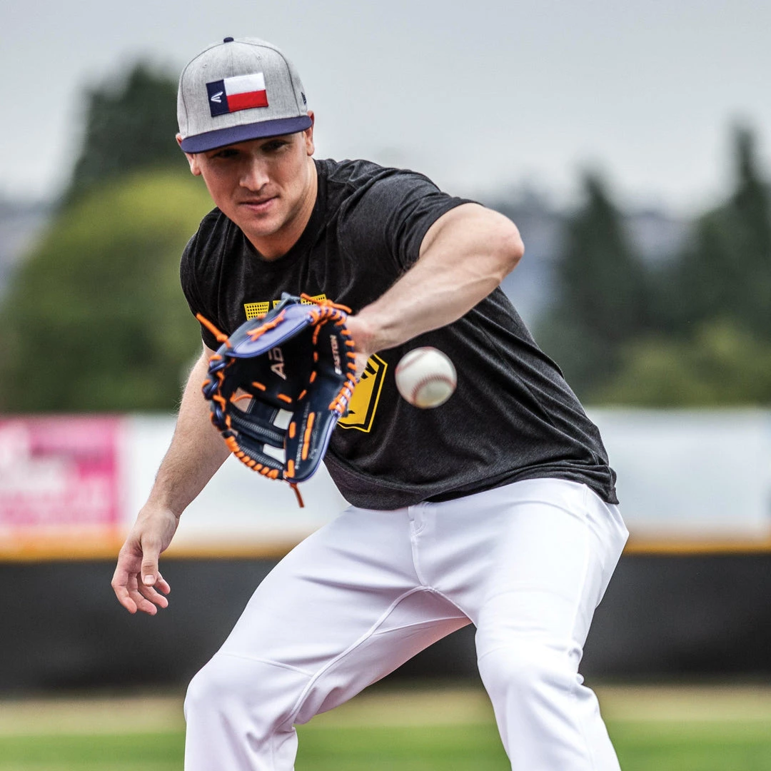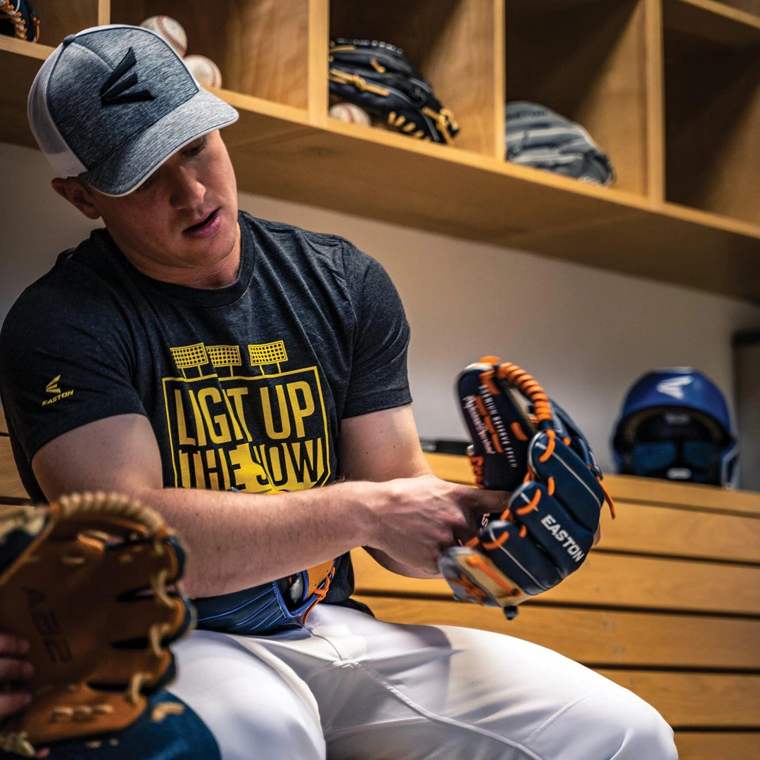 The 2020 Professional Reserve Series includes Alex Bregman’s Game Spec ball glove. This 11.75” Single Post is the exact model used by Houston All-Star, Alex Bregman. The navy leather is Premium Reserve™ USA steerhide that is professionally tanned in one of Japan’s oldest and most exclusive tanneries. The back of the wrist/thumb features a cream embossed snakeskin leather. A metallic silver accent leather used on the pinkie/thumb and the binding/welting is combined with a Professional grade orange rawhide lace for a bit of added flair. The plush sheep wool shearling fur wrist liner provides pro style comfort on the back of the hand.