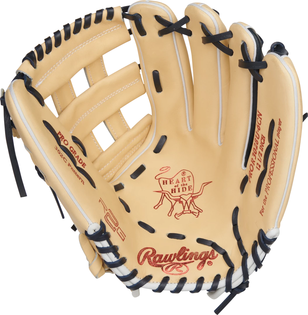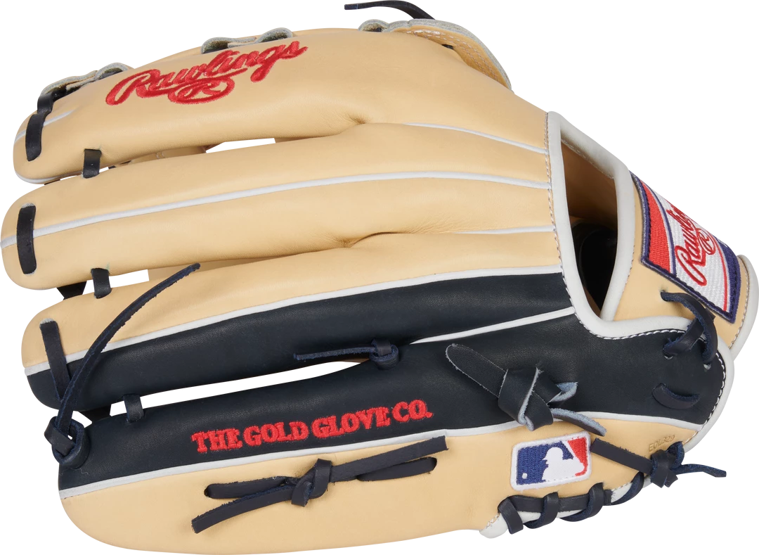 Add some color to your game with the Heart of the Hide R2G ColorSync 6.0 12.5-inch ContoUR fit outfield glove! Our designers crafted this model from ultra-premium steer-hide leather, and it boasts the perfect amount of style for any outfielder. Like every R2G glove, it comes with 25% more factory break-in, so it’s game-ready out of the box. It also features our ContoUR fit design, which offers slimmer, lowered finger stalls and a tighter hand opening. For players with smaller hands, this model will truly fit like a glove. In addition, the re-engineered 12.5-inch 302-pattern on this outfield glove perfectly blends into its ContoUR fit design! The classic camel/navy colorway perfectly plays off the ultra-rare red, white, and blue ColorSync patch too! As a result, this ColorSync 6.0 glove offers the perfect combination of style and performance. This limited edition Heart of the Hide R2G ColorSync 6.0 ContoUR fit outfield glove is an excellent choice for any outfielder looking to add some flair and performance to their game. Order yours now, before it’s gone for good!