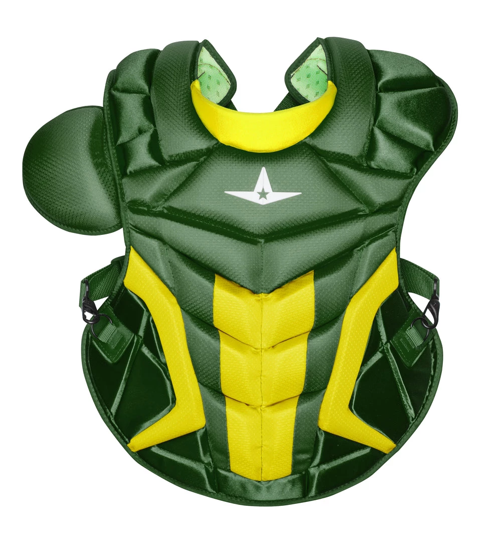 - All star chest protectors are measured from the top of the sternum (below the collar) to a player’s navel.