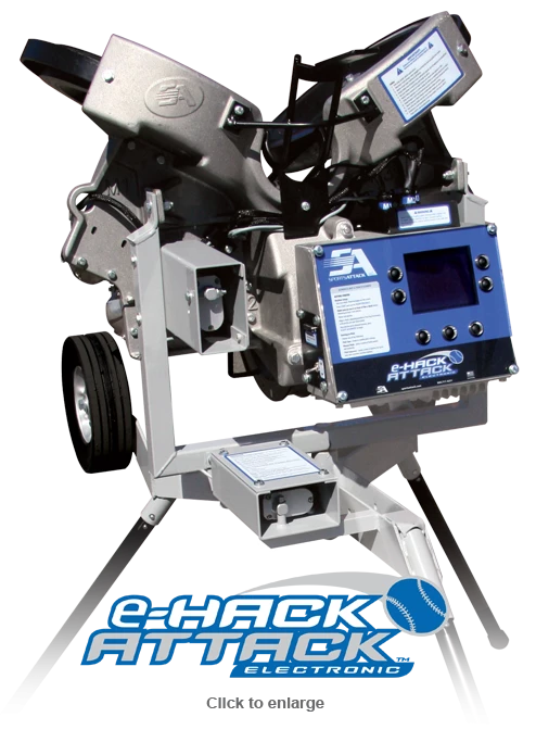 The Baseball e-Hack Attack is our Programmable pitching machine. In seconds you will be able to dial in any change in speed, location and pitch type to deliver any fastball, right or left hand breaking pitch, sliders or change-ups.