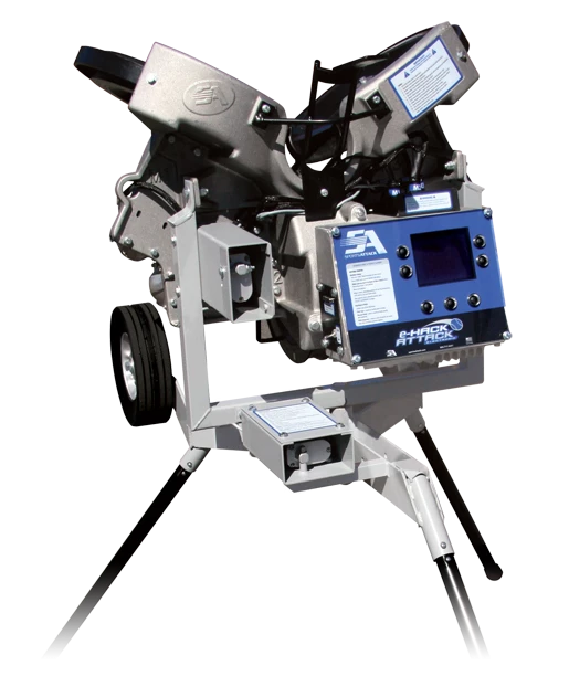 The e-Hack Attack pitching machine is designed for use with regulation leather