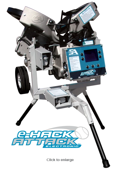 The softball e-Hack Attack is our Programmable pitching machine. In seconds you will be able to dial in any change in speed, location and pitch type to deliver any fastball, riser, drop, right- and left-handed screwball up and into the hitters.