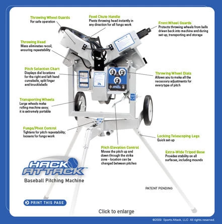 With a quick turn of the Hack Attack dials you can effortlessly throw major league fastballs, and right and left handed breaking pitches including curveballs, sliders and split fingers.