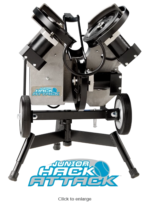 At a level where simplicity is imperative, with the Junior Hack Attack dials you can effortlessly throw fastballs, risers, drops, right- and left-handed screwballs up and into the hitters.