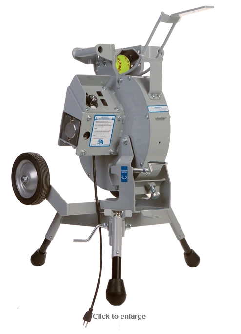 The Blast Attack is Sports Attack’s new single wheel machine designed for club and other youth programs. It allows complete vision of the ball, just like a live pitcher, while delivering fastballs up to 70 MPH. Unique, patented design also incorporates easy elevation adjustment, full fungo capabilities, many safety features and extreme portability.