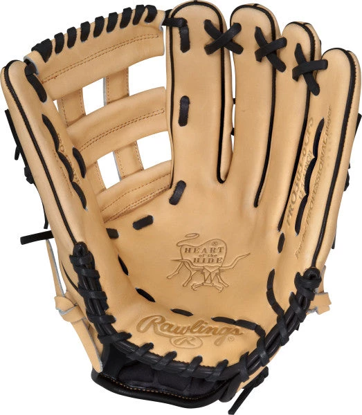 This Heart of the Hide 12.75” baseball glove features a the PRO H Web pattern, which was designed so that outfielders could see through the web to make catches and shield their eyes from the sun or lights at the same time. With its deep pocket and open web, this glove is primarily for outfielders. Handcrafted from the top 5% of steer hides and the best pro grade lace, Heart of the Hide glove durability remains unmatched.