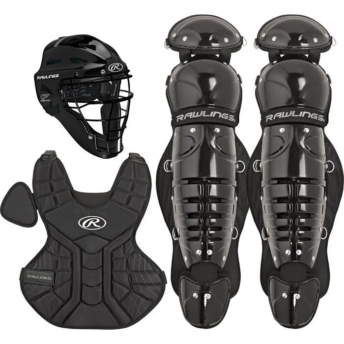The new players Series catcher set includes one hockey style catching mask that fits a head size 6 1/2 – 7. It also includes a pair of leg guards and a catchers chest Protector. The Players Series catcher set features ultimate protection and comfort while remaining lightweight and flexible.