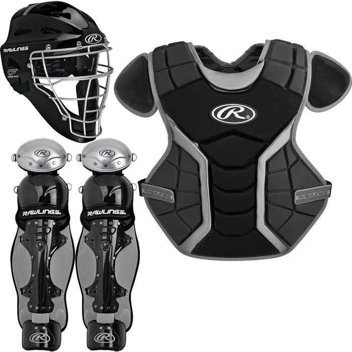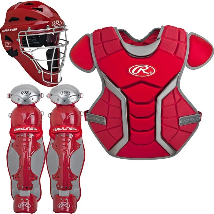 Rawlings Renegade® Series catcher’s set features a Coolflo hockey-style helmet, Chest protector and Triple-knee leg guards.