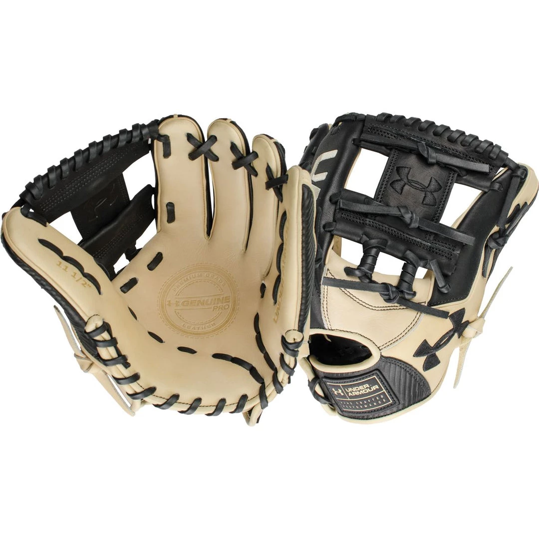 Performance meets strength. Under Armour’s Genuine Pro line of fielding gloves has been developed to meet the needs and expectations of players from the professional to ultra-competitive travel levels. Evolving the traditional craftsmanship methods, process improvements create a quicker break-in period without sacrificing durability. Every specialist that plays a role in building these gloves is trained to understand the player and what they want from their glove. Japanese tanned leather with premium cowhide linings provide the great feel to the go with the game’s most popular patterns. Whether your workplace is a big league stadium or advancing through a bracket during the dog days of summer, GENUINE PRO suits you.